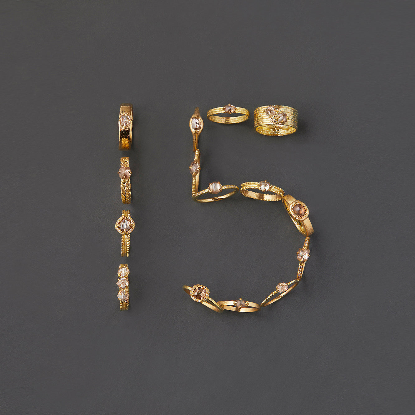Satomi Kawakita Jewelry proudly celebrated its 15th anniversary in 2023. To commemorate this momentous occasion, Satomi designed a truly exceptional One-of-a-Kind Collection of 15 unique rings, each adorned with exceptionally rare and difficult-to-source diamonds. These rings boast handmade designs that pay homage to Satomi's earlier organic creations, adding a touch of timeless elegance to this special collection.