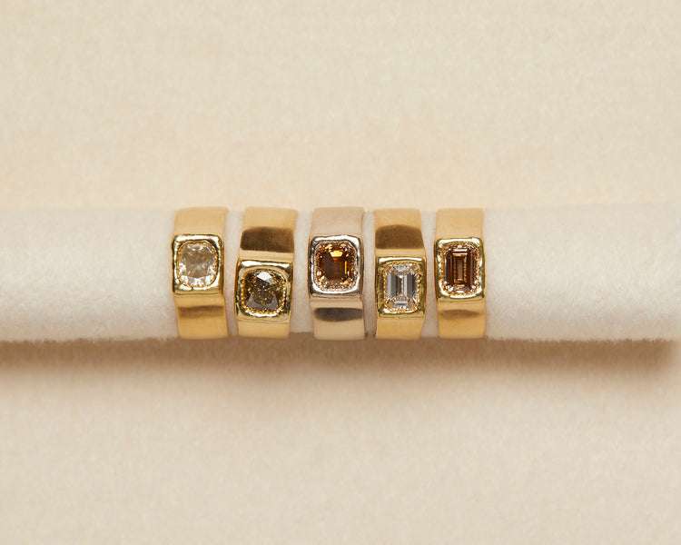 Our One-of-a-Kind Fancy Cut Diamonds highlight the individuality of each stone through distinctive shapes beyond the traditional round. This collection features emerald, square emerald, cushion, princess, and diamond cuts, each hand-selected by Satomi for its unique character and beauty.