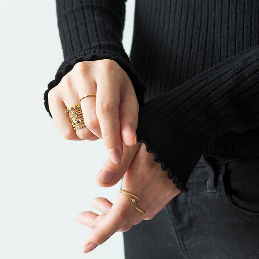 The Homespun Collection adds a fresh twist to traditional shapes. With black rhodium softening the sparkle, Satomi achieves a chic, understated look that harmonizes brilliance with subtle elegance.