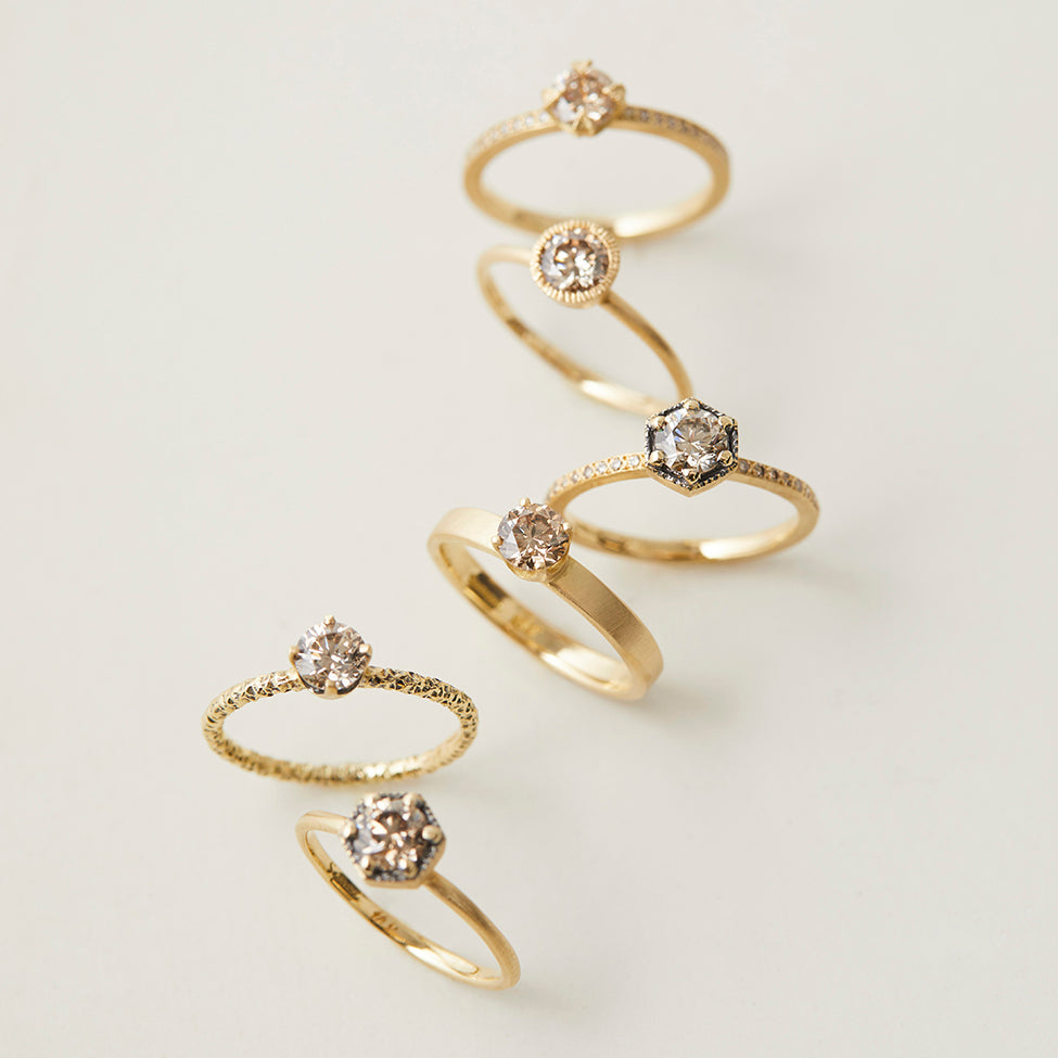 Exquisitely handcrafted to last a lifetime, our classic homespun brown diamond solitaire rings at Satomi Kawakita have an unrivaled poetic beauty that speaks a thousand words.
