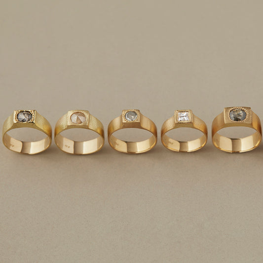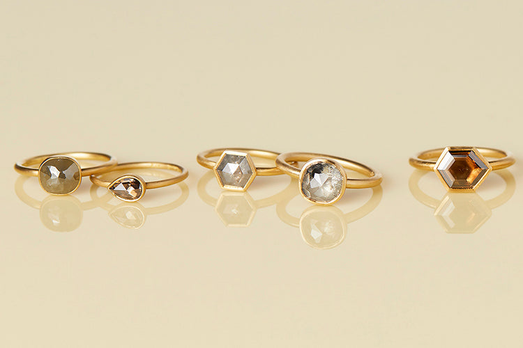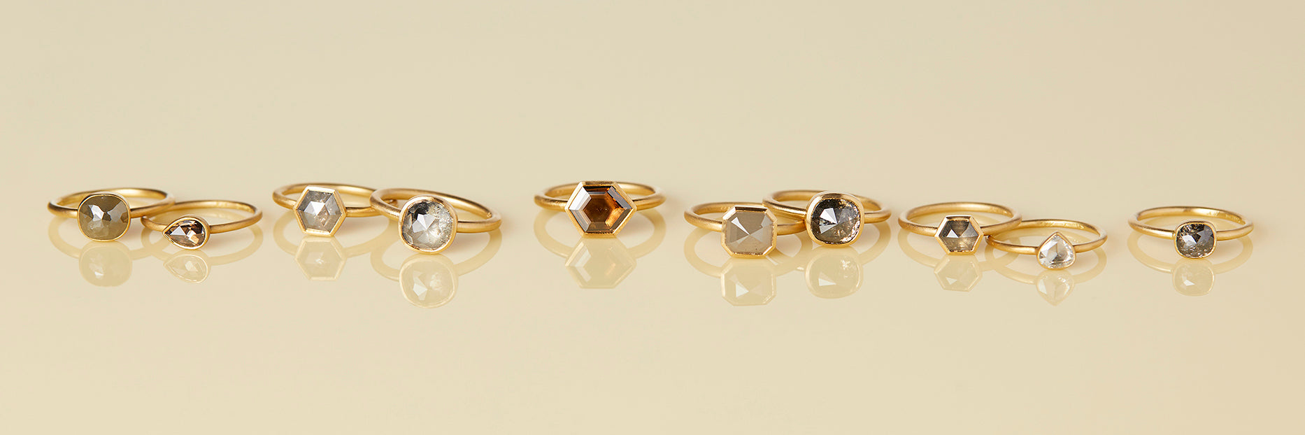 The rose cut is one of the most unique and breathtaking—with its origins dating back to the 16th century, it was inspired by the spiral of petals in a rose bud and features a flat bottom and domed top made up of triangular facets. Satomi searched high and low for these special stones in a variety of shapes, sizes, and colors. Each delicate ring will take your breath away with its captivating beauty.