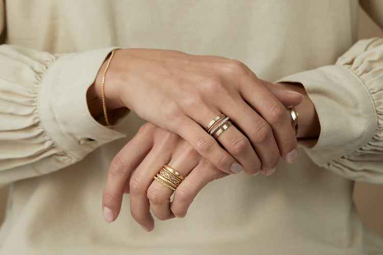 Explore easily stackable rings. Thoughtfully chosen for their balance, texture, and ease of wear, they layer naturally with one another and with pieces you already love.