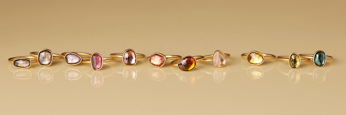 A marvelously vibrant mineral, tourmalines mystified gemologists for centuries - it wasn't until the 1800s that they were distinguished from precious stones like ruby and sapphire, revealing their distinctive identity with a unique crystal structure. Satomi loves the rich colors of tourmaline and created these special pieces with some of her favorites.