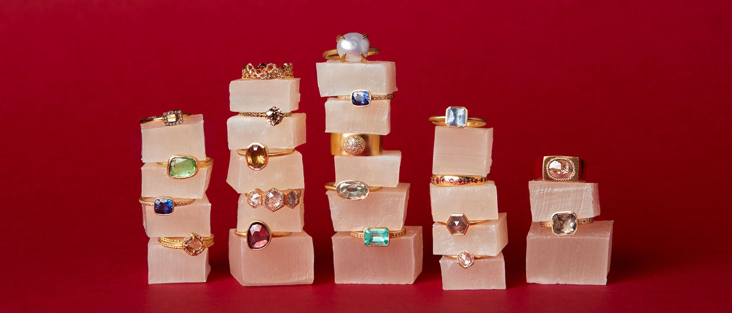 Explore our complete collection of One-of-a-Kind rings, necklaces, and earrings, each meticulously handcrafted to showcase stones that Satomi found individually from all over the world.