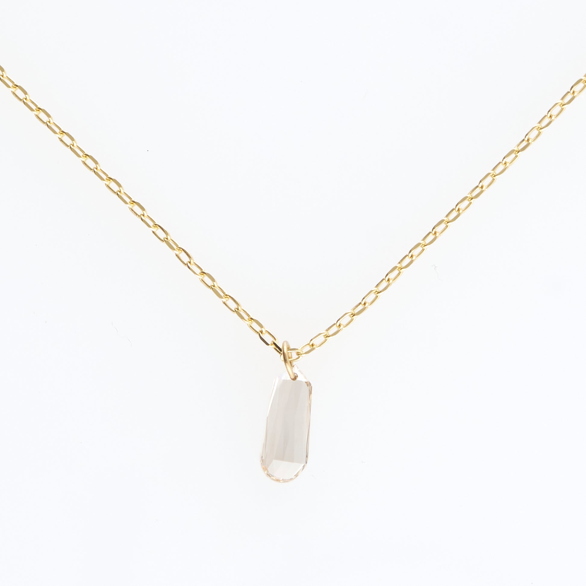 Shaped and cut like a chandelier component, these flat, faceted diamond necklaces catch light quietly rather than brilliantly.