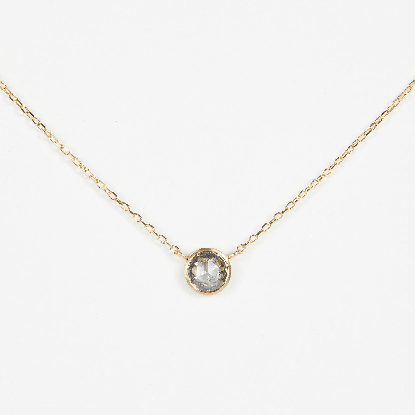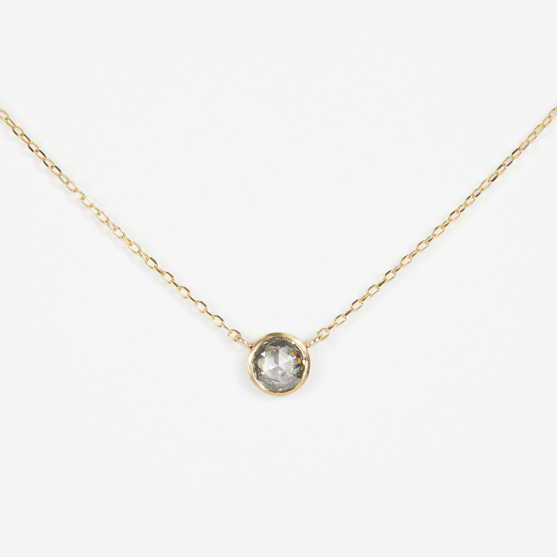 This breathtaking necklace features a rose cut diamond, hand-selected for its unique character. Its captivating facets and unique shape create a play of light that's truly mesmerizing.