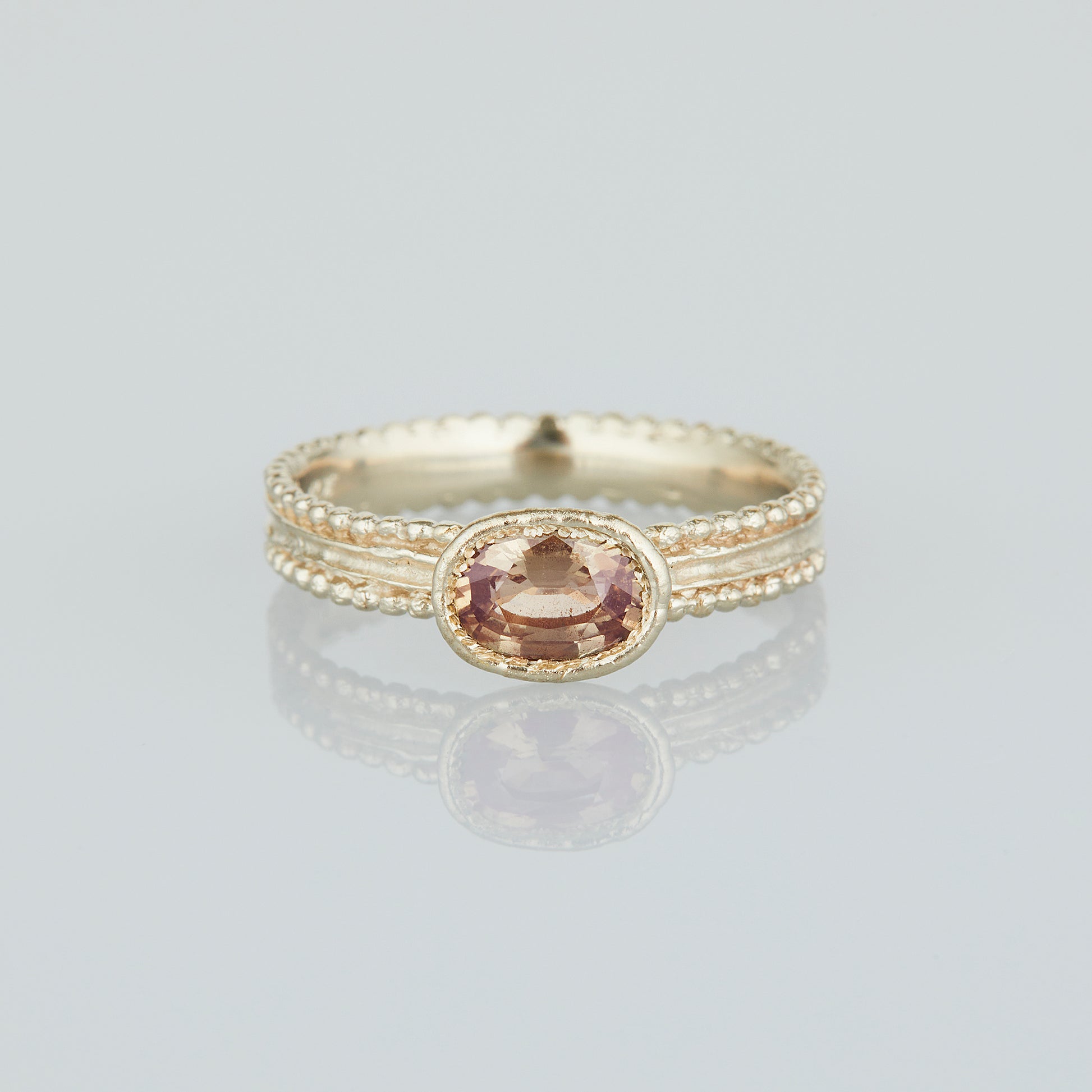 When most people think of sapphires, the deep blue color often comes to mind. But sapphires naturally occur in a wide spectrum of colors, each with its own story to tell. Our One-of-a-Kind Oval Cut Sapphire Ring features a hand-selected stone, set in 18K white gold to bring out the soft, delicate tones of each sapphire.