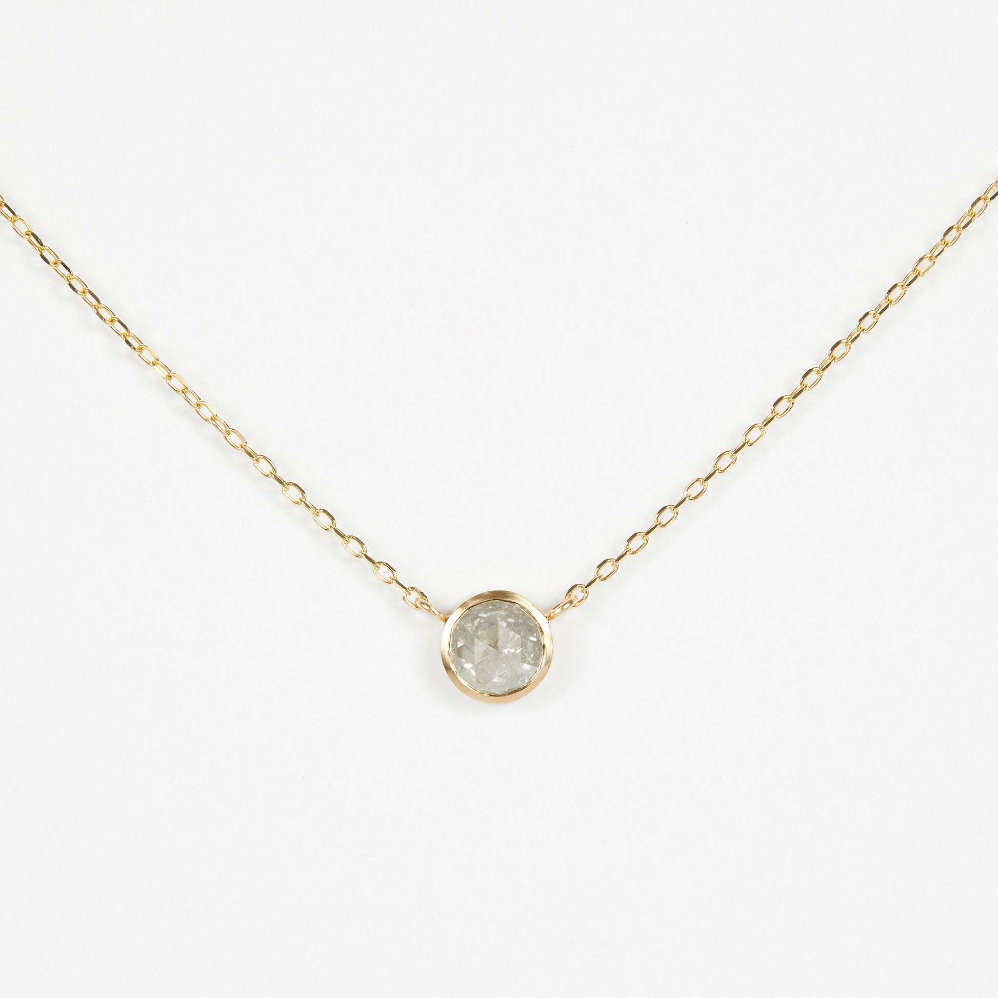 This breathtaking necklace features a rose cut diamond, hand-selected for its unique character. Its captivating facets and unique shape create a play of light that's truly mesmerizing.