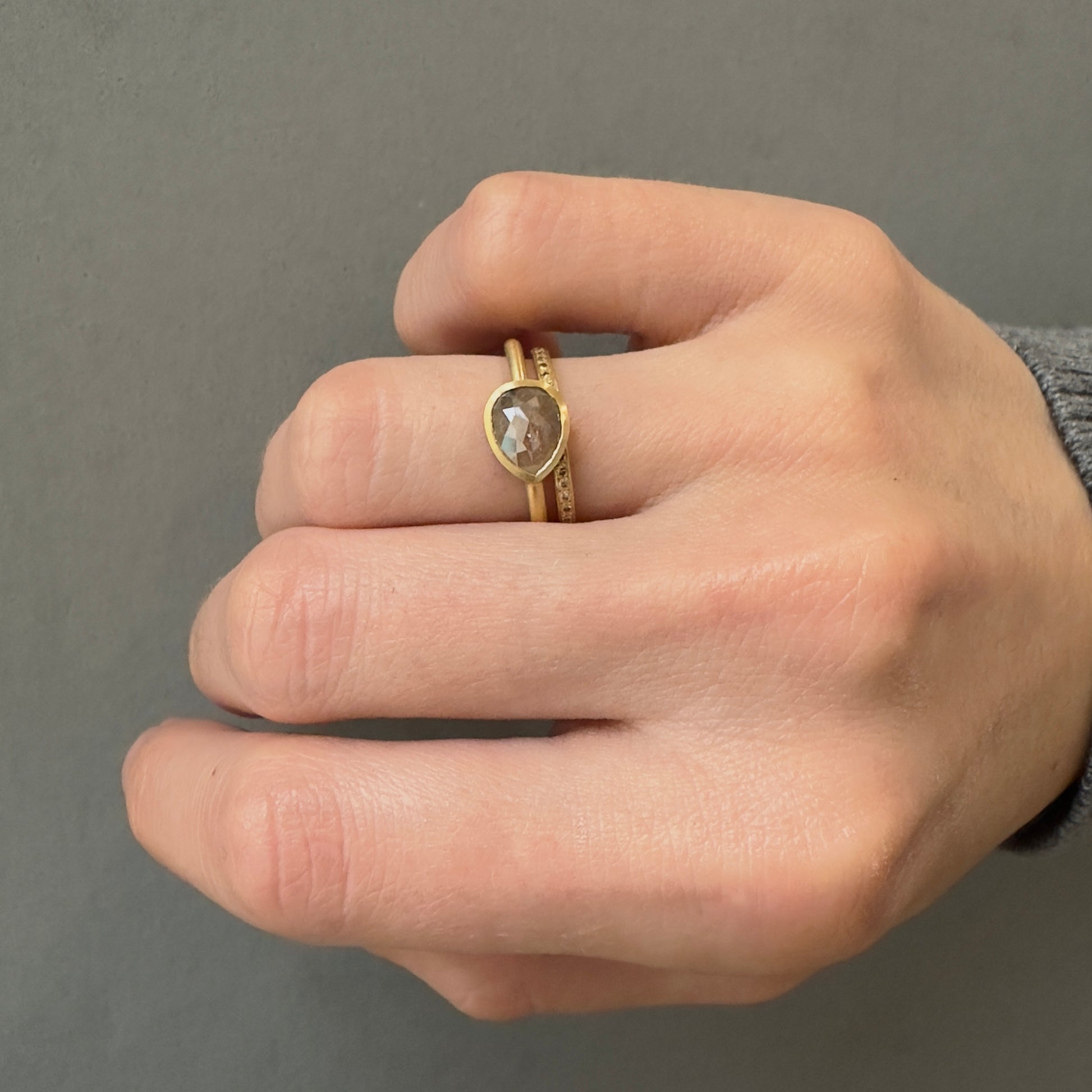 Each One-of-a-Kind Rose Cut Diamond Ring features natural inclusions formed deep within the Earth over hundreds of millions of years, creating a unique expression in every stone. Set in a metal chosen to complement its natural hue, the new open-back design allows light to move through the diamond, revealing its inner world and shifting its appearance with every angle.