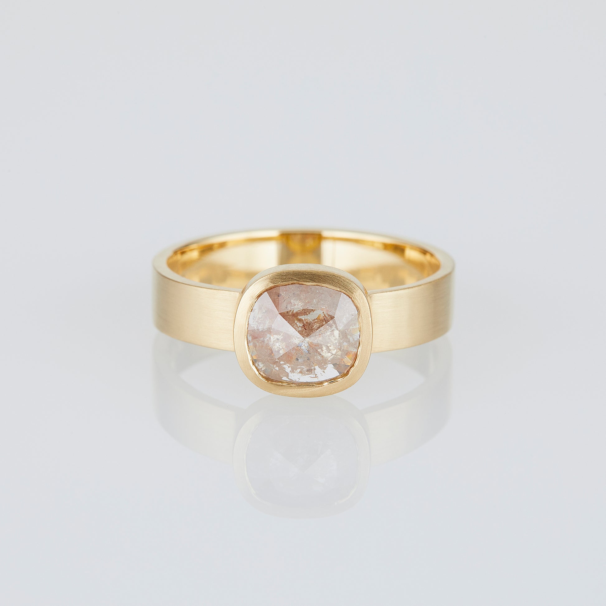 Each One-of-a-Kind Rose Cut Diamond Ring features natural inclusions formed deep within the Earth over hundreds of millions of years, creating a unique expression in every stone. Set in a metal chosen to complement its natural hue, the new open-back design allows light to move through the diamond, revealing its inner world and shifting its appearance with every angle.