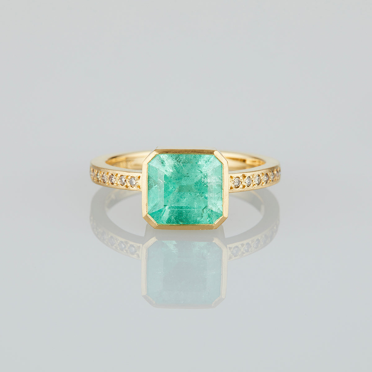 ["$5000 \u0026 Above","1.0ct \u0026 Above","18K Yellow Gold","2 - 2.9mm","Emerald","engraving","Fashion bands with stones","Green","hide","Matte","May","One-of-a-Kind","Pastel Emerald Ring Collection","retail-only","Ring","shopify-pay-notice-exclude","Size 7 and above","upgraded-box"]