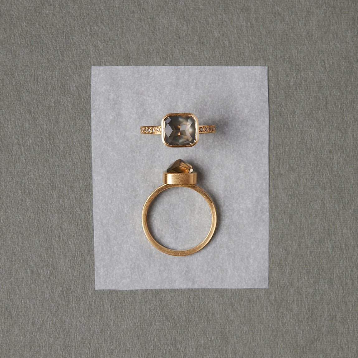 Each diamond is shaped using a 14th-century cutting technique, linking it to centuries-old traditions and the grandeur of Indian royal courts. Only a small handful of these unique stones are available at a time, as few artisans still practice this age-old craft, making them impossibly rare and adding to their allure. Satomi fell in love with the raw beauty of these diamonds and how their primitive nature perfectly complements her design aesthetic.