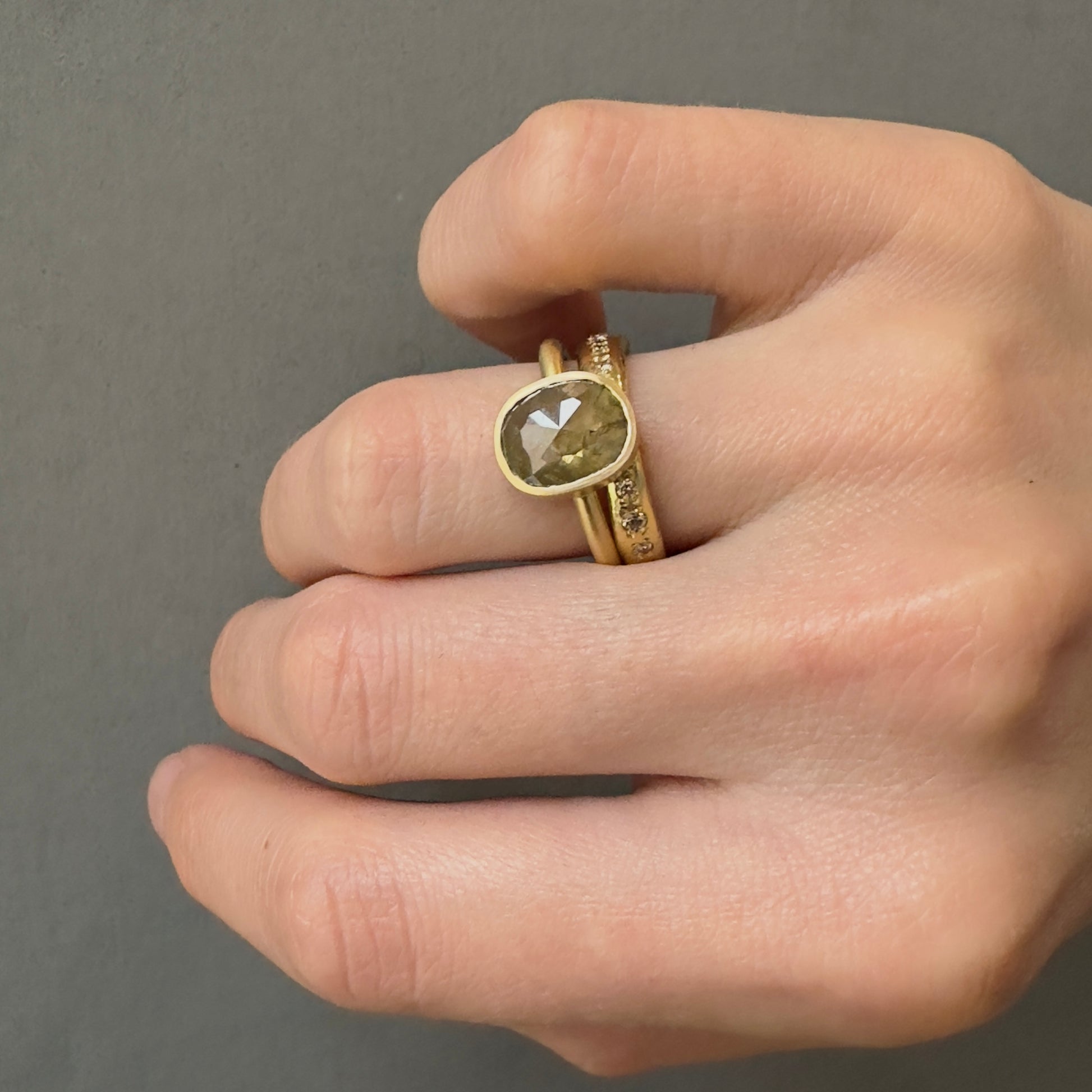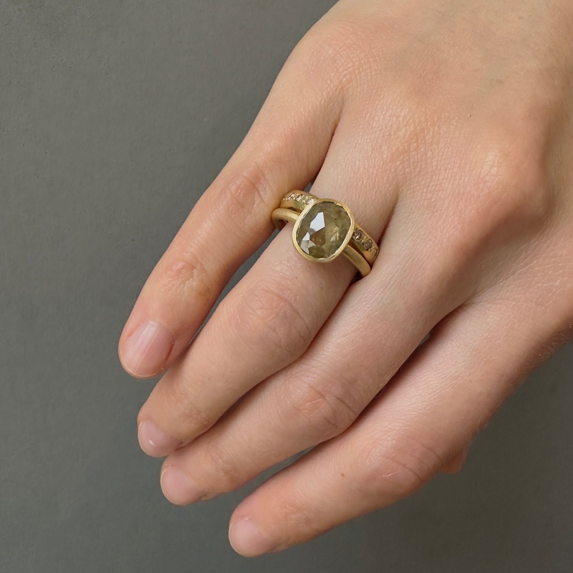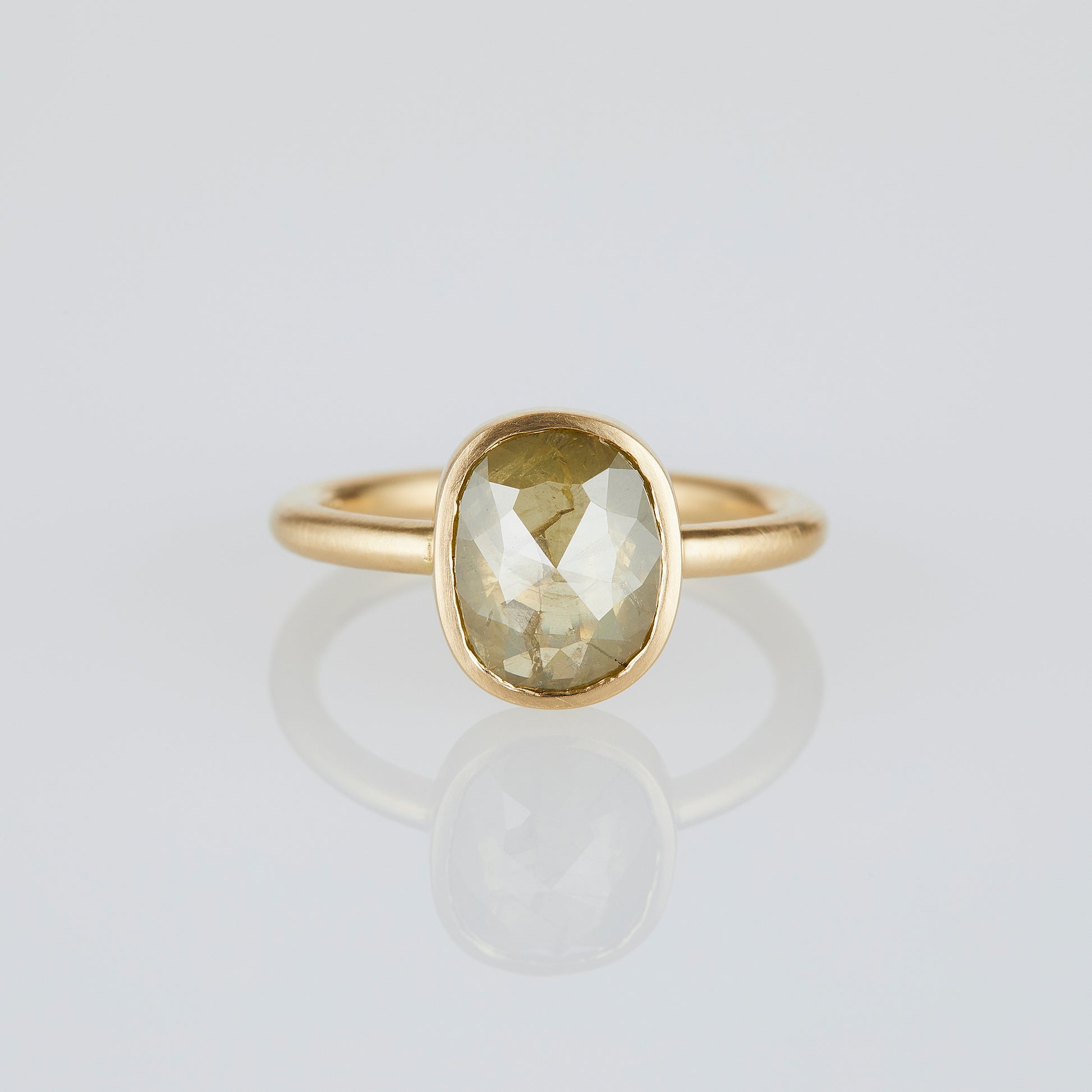 2.74 Carat One-of-a-Kind Rose Cut Yellowish Grey Diamond Ring