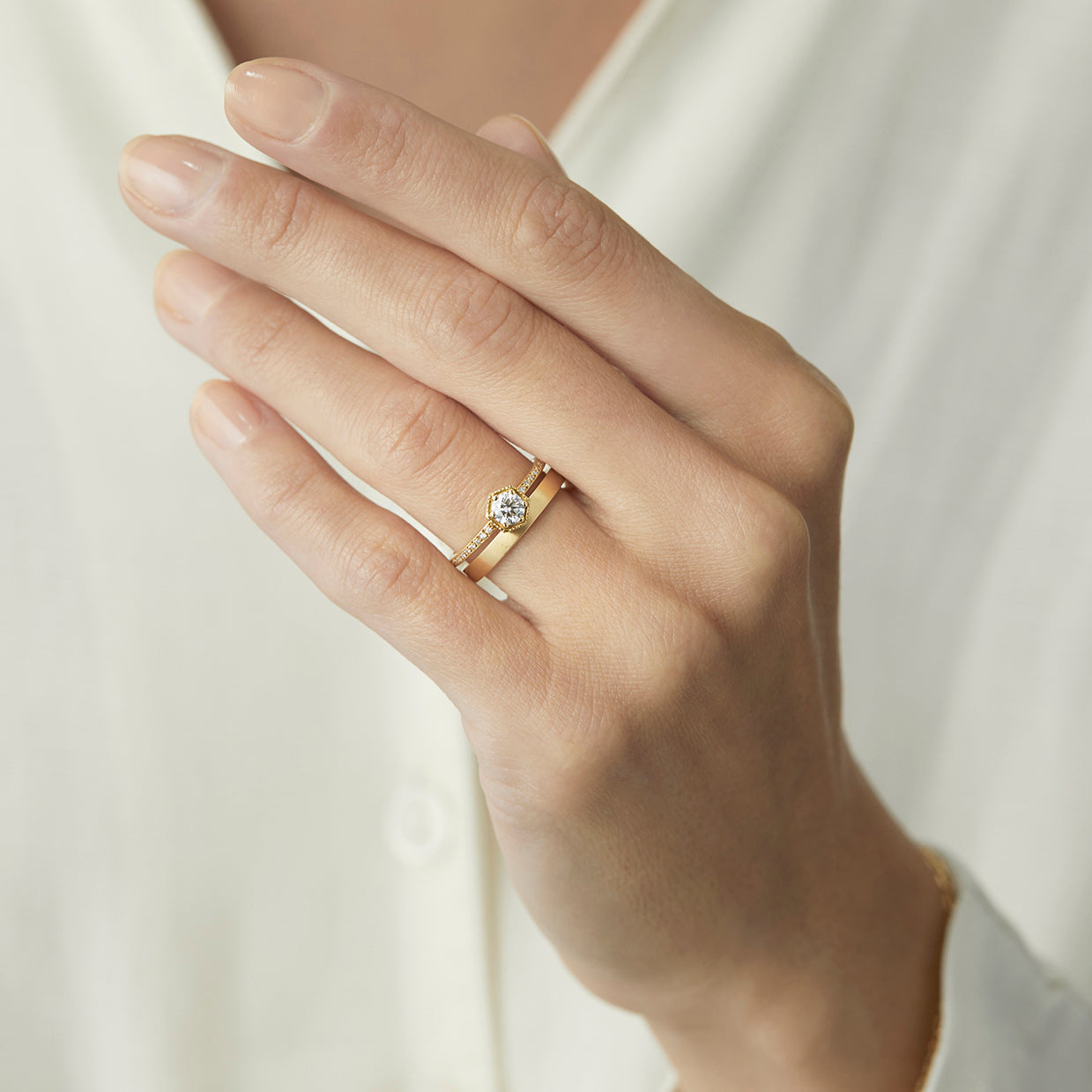 ["$2000 - $5000","0.2 - 0.49ct","1.1 - 1.9mm","18K Rose Gold","18K White Gold","18K Yellow Gold","Diamond","Engagement","engraving","Hexagon","Matte","optional-black-rhodium","Platinum","Ring","Signature Hexagon","Size 6 and above","upgraded-box","VIP","White"]