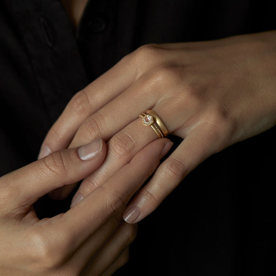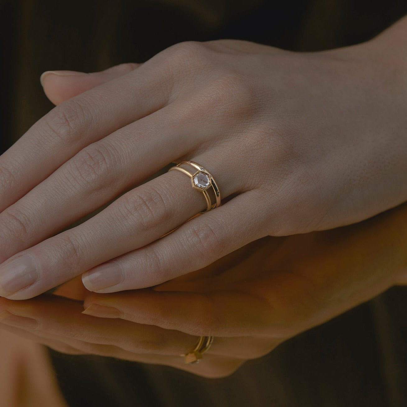 5mm White Diamond Rose Cut Hexagon Solitaire Ring