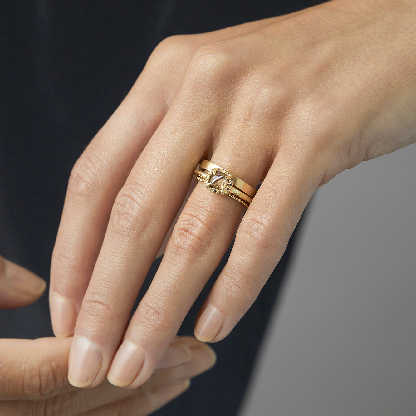 Satomi Kawakita Jewelry proudly celebrated its 15th anniversary in 2023. To commemorate this momentous occasion, Satomi designed a truly exceptional One-of-a-Kind Collection of 15 unique rings, each adorned with exceptionally rare and difficult-to-source diamonds. These rings boast handmade designs that pay homage to Satomi's earlier organic creations, adding a touch of timeless elegance to this special collection.