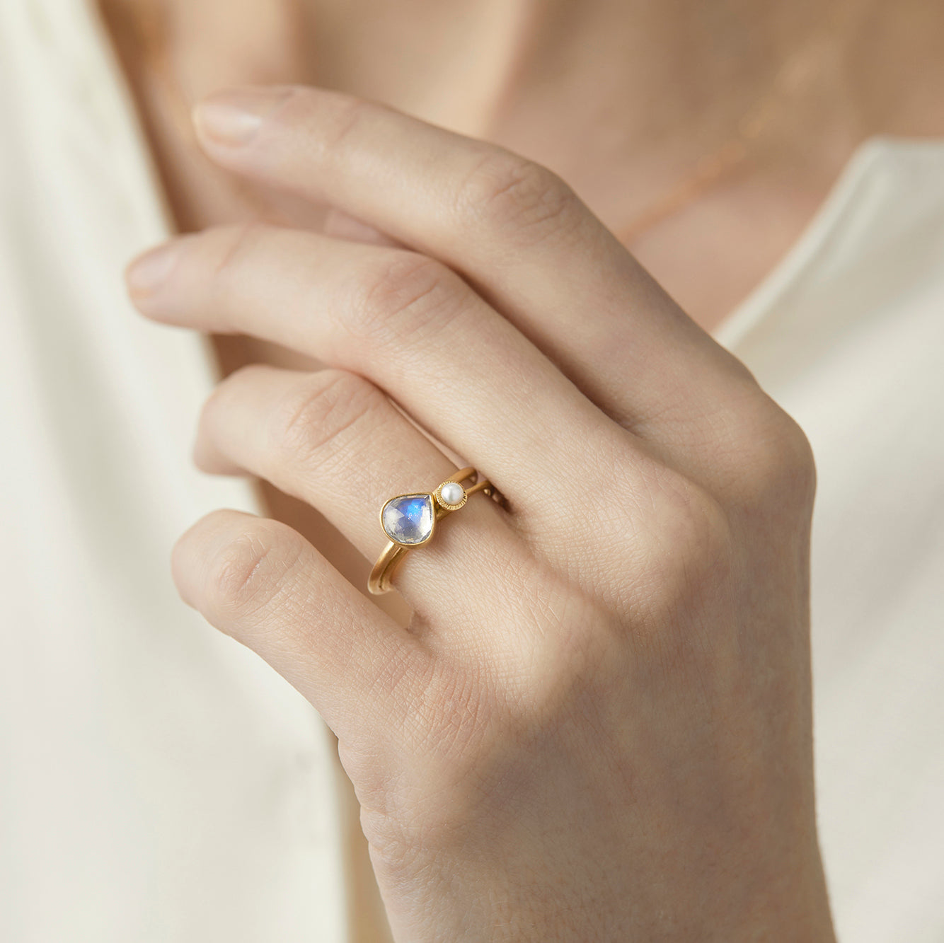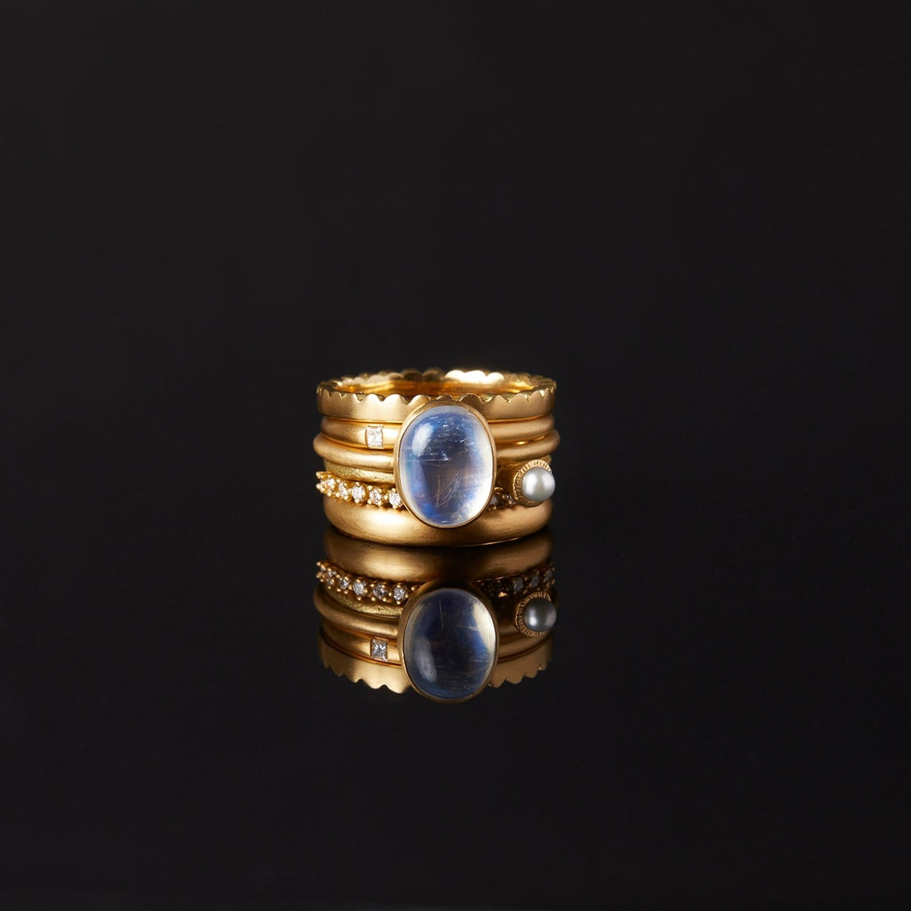 The Pearl Raised Circle Solitaire Ring showcases a lustrous pearl set in a raised setting with plenty of texture, making it perfect worn alone or as a great piece to build your stack around.