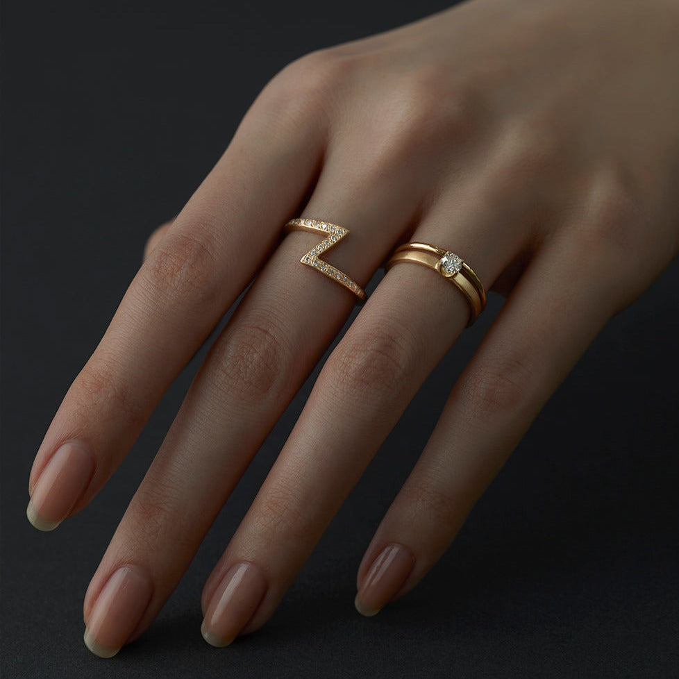 A unique take on the classic solitaire engagement ring, ours features an ever-so-softly rounded flat band, a shimmering satin matte finish, and four prongs to allow the beauty of the stone to really shine.